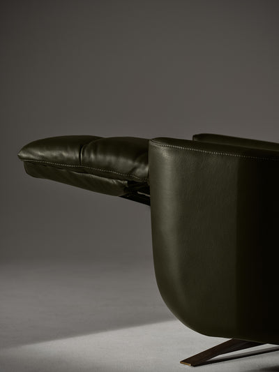 American Leather introduces the Cirrus Comfort Solace Recliner, offering a new standard in relaxation. This innovative motion recliner features the exclusive "zero gravity" reclining mechanism, allowing users to recline to a position where their feet are elevated above the heart. This design reduces stress on the body and promotes overall well-being, providing a truly rejuvenating experience.