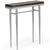 The smallest console table in the Wick Collection, the Hubbardton Forge Wick Console Table 30" features a 1.5" thick, solid Vermont maple wood top in a choice of Clear, Grey, or Espresso finishes. The maple wood top fits securely, filling the console's narrow steel frame from edge-to-edge. Long, elegant, tapered steel legs are hand-hammered by makers in the forge. Available in all standard finishes.