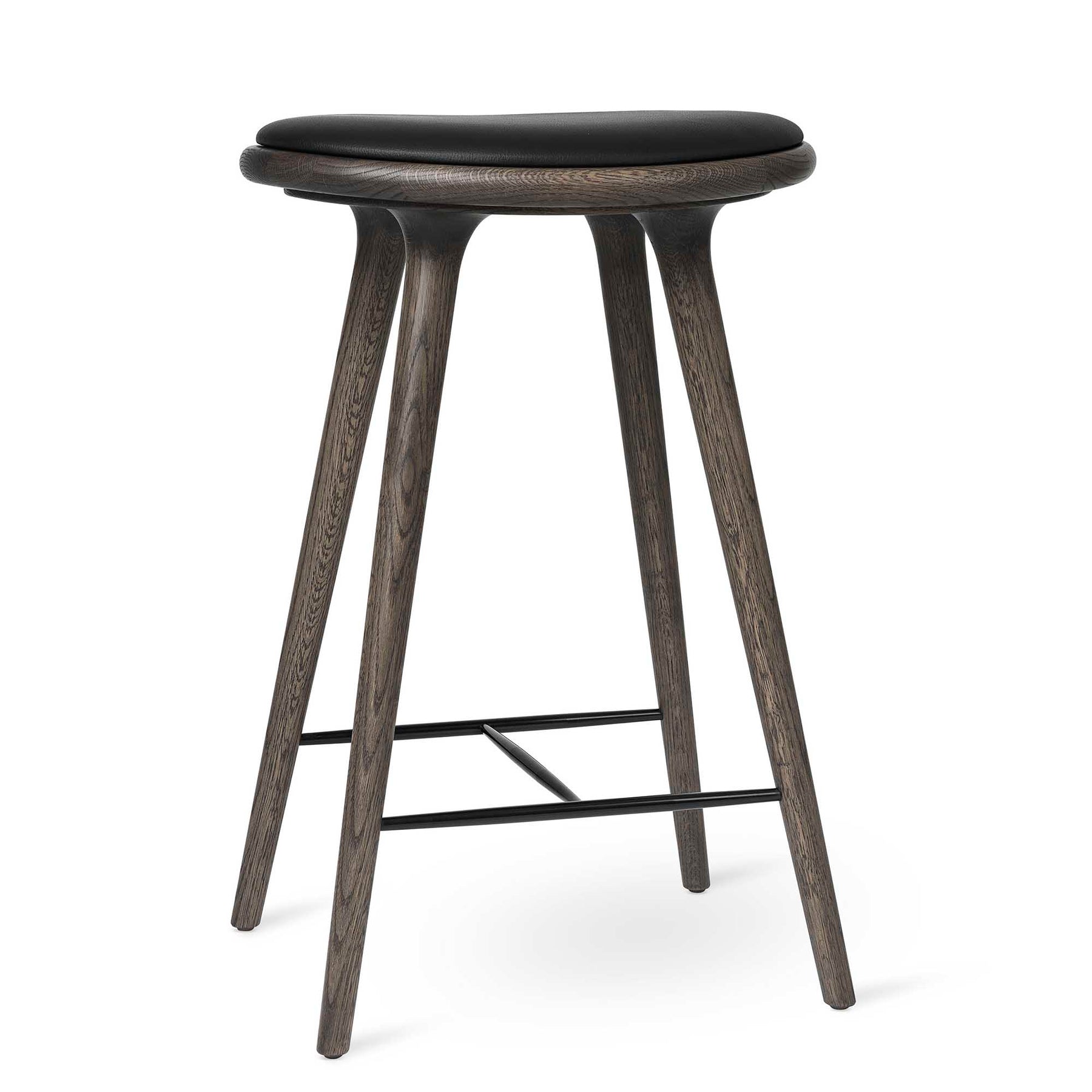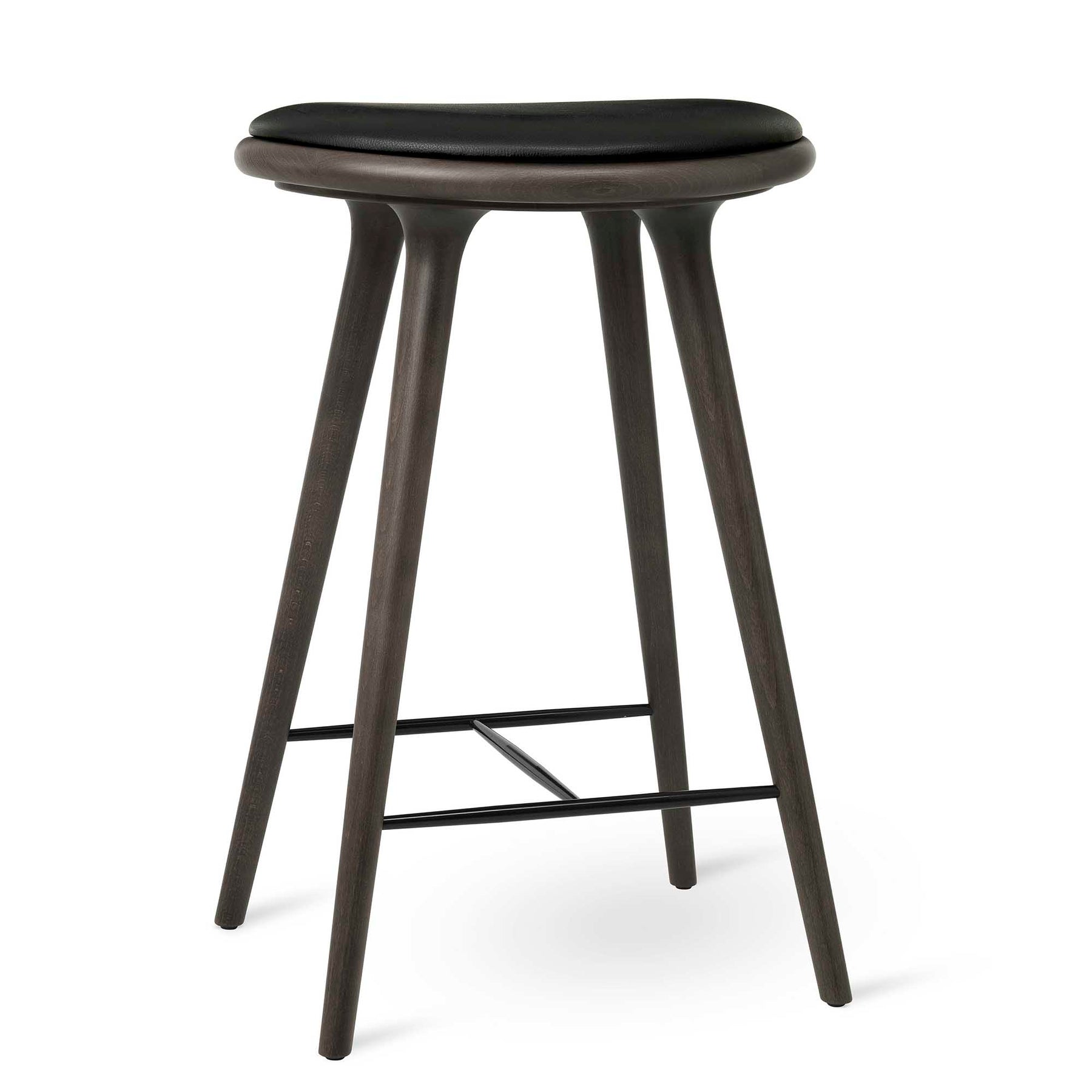 The Mater Space Copenhagen Counter Stool is regarded as a new Danish classic. With its organic yet minimalist style, this bar stool is suitable for residential and commercial use. The seat is upholstered with top grain black leather, and the detailing on the legs to seat connection creates an appealing and soft structure.