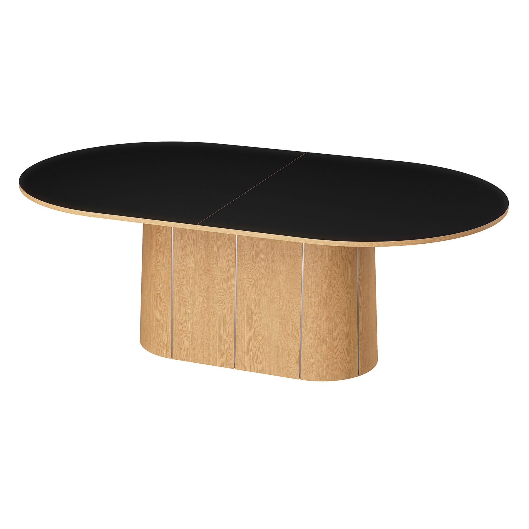Laminate tabletops are constructed in the same way as veneered surfaces. The furniture board is covered with high-pressure laminate instead of a veneer. Skovby's high-pressure laminate has unmatched resistance for everyday use and is easy to maintain. Laminate surfaces may have pigmentation spots of up to 0.5 mm, just as minor deviations in gloss may occur between each surface.- Comfortably seat 8 people when closed
