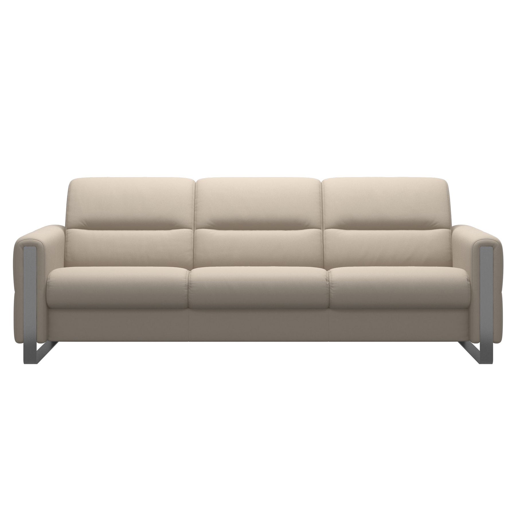 The Stressless Fiona 3 Seat Sofa Steel Arm boasts a modern, clean design with well-balanced proportions. Its classic, simple lines are highlighted by a sloping back and a fine horizontal stitch detail that adds a unique touch.