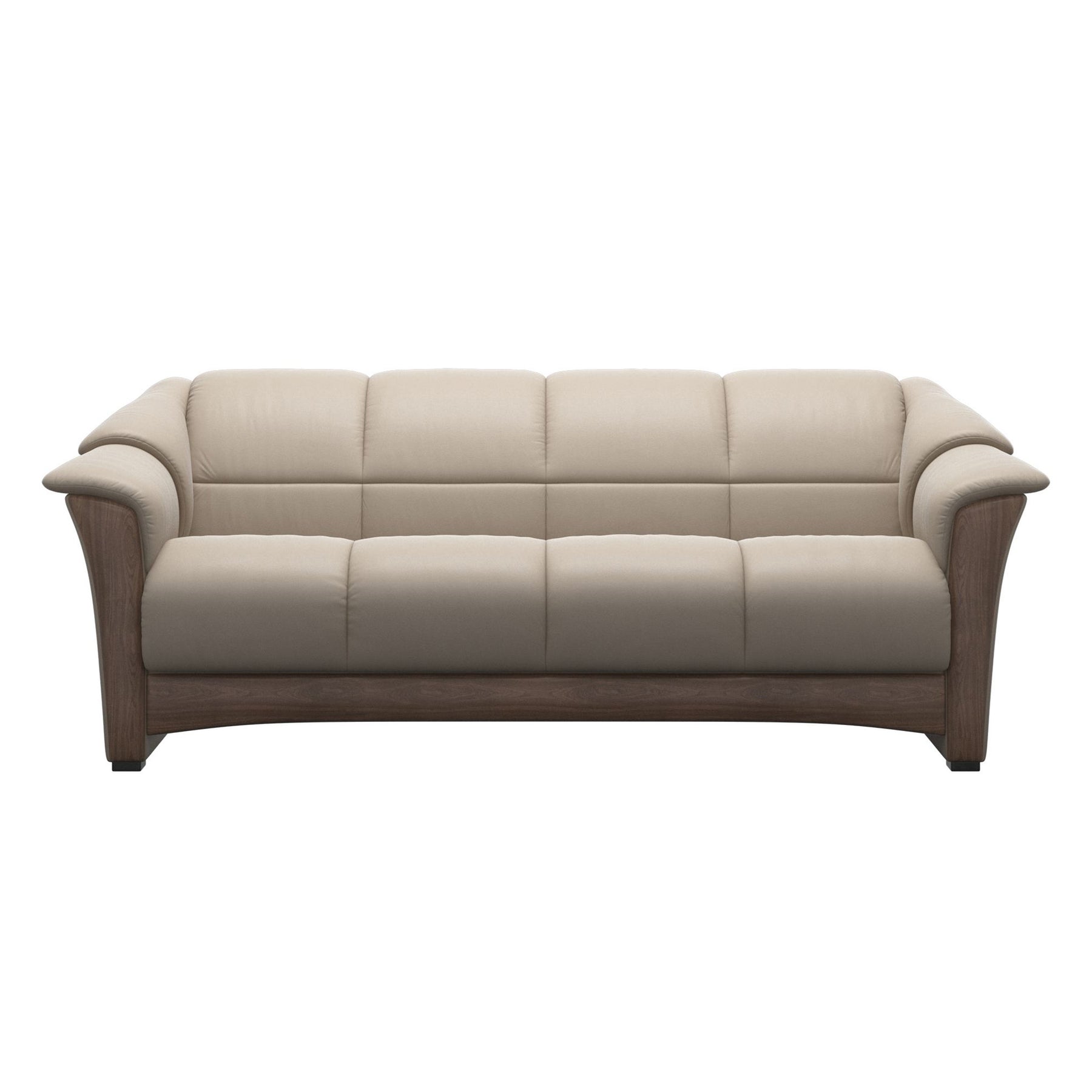 Cosmopolitan and elegant, the Stressless Oslo is one of Stressless' most opulent sofas. With gently sloping contours, plush detailing, and generous proportions, the Oslo is a stunning example of contemporary Scandinavian design. With a fixed back and curved wood, and overlapping arm details, the Oslo is for those with a dramatic sense of style. The Oslo is available as sofa and loveseat models. The Ekornes Collection Oslo sofa comes with an exposed wood front.