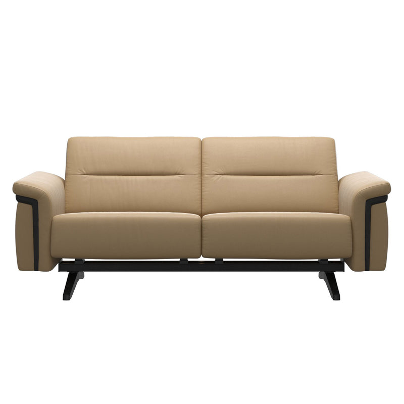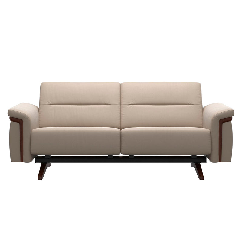Stressless Stella 2 Seat Wood Arm (SW1) is a soft and contemporary modular sofa that responds to your movements. The Stressless® BalanceAdapt™ system allows the sofa to respond to your natural movements by adjusting the seat as you move. Recline, lean forward, lie down, or put your feet up and feel how the soft and generous seat adapts to your position. When the occasion calls for a regular sofa, simply lock the function to stop the seat from moving. Available with different armrests and seat widths, an optional corner, a custom headrest, and a footstool.