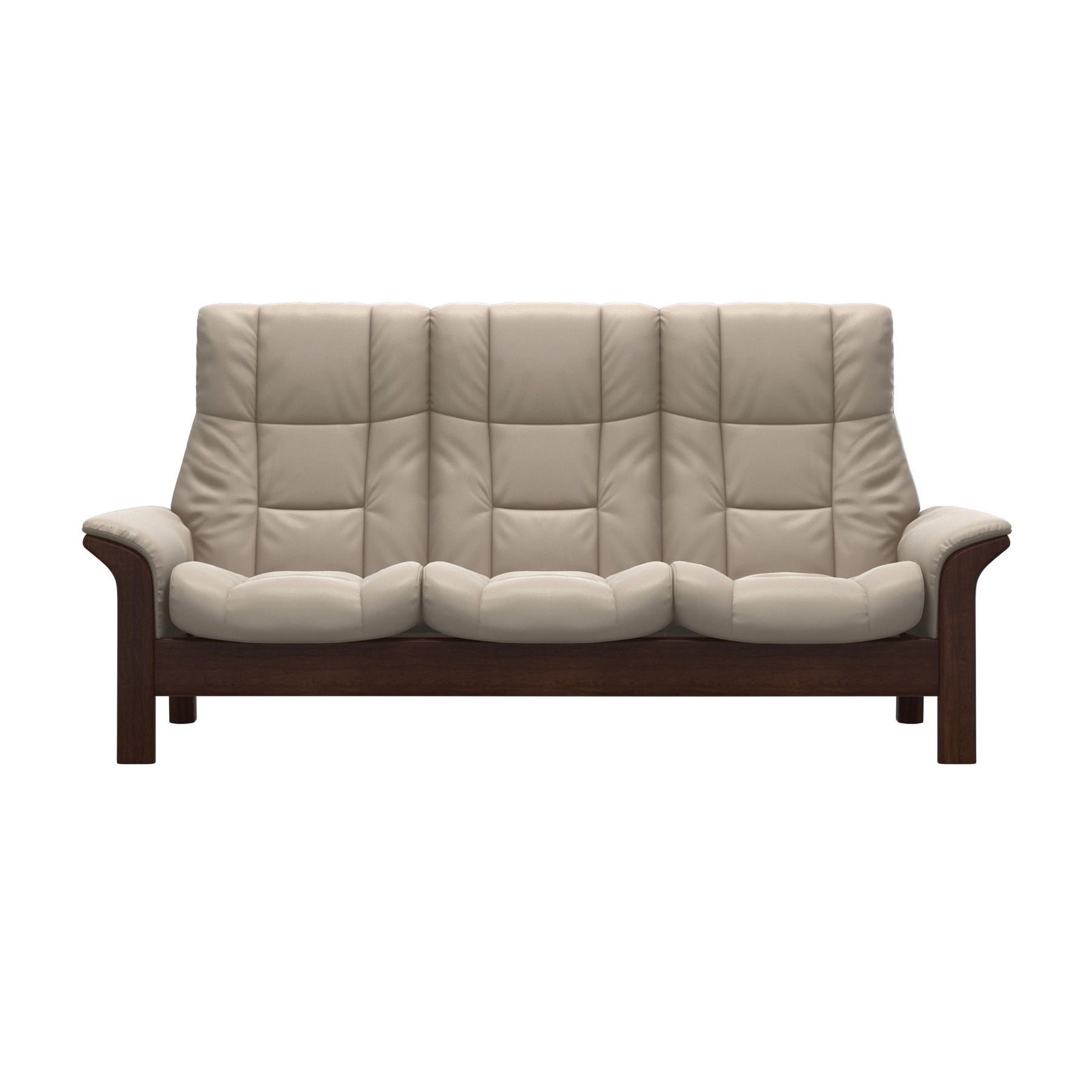 With gentle curves, padded arms, and a supple seat, this sofa is as sleek as the name implies. The Stressless Windsor offers an invitation to pure relaxation in a classic design with details in wood. Individually reclining seats, available in both high and low back, ensuring maximum support for the entire body.
